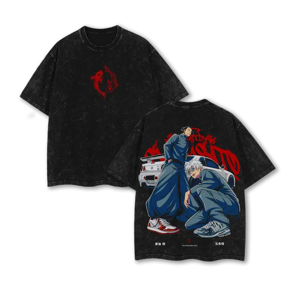 Jujutsu Kaisen Anime Gojo Satoru Geto Suguru Retro Vintage Washed Oversized Manga Graphic T-Shirt