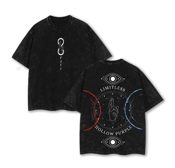 Jujutsu Kaisen Anime Gojo Satoru Limitless Technique Vintage Washed Heavy Cotton Oversized Graphic Tee