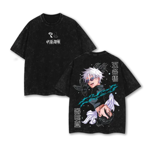 Jujutsu Kaisen Gojo Satoru And Suguru Geto Duality Double Printed Vintage Washed Anime Manga Graphic Tee