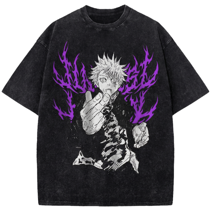 Jujutsu Kaisen Satoru Gojo Vintage Washed Oversized Shirt – Retro Anime Manga Graphic Streetwear Tee