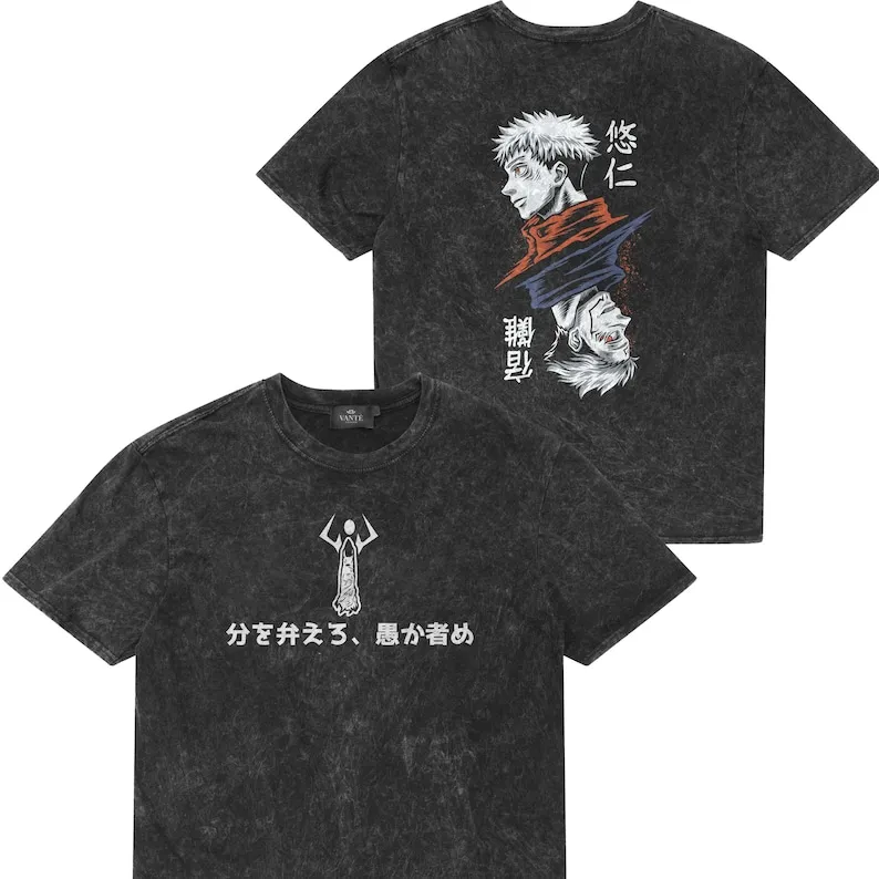 Jujutsu Kaisen Yuji Itadori Ryomen Sukuna Split Face Vintage Washed Oversized Anime Manga T-Shirt