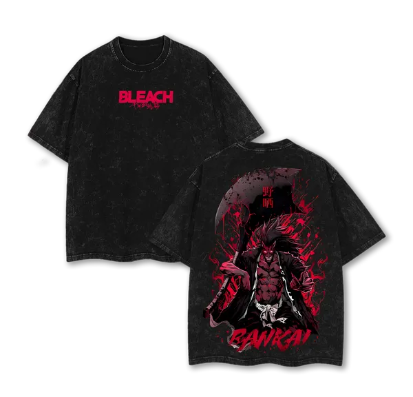 Kenpachi Zaraki Bleach Soul Reaper Anime Vintage Washed T-Shirt Double Printed Manga Graphic Tee Oversized