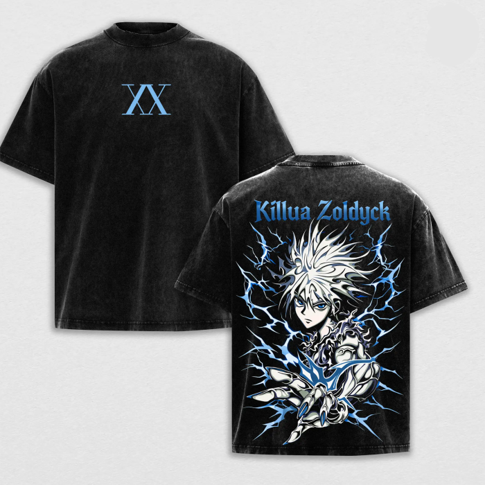 Killua Zoldyck Hunter x Hunter Washed Anime T-Shirt – Streetwear Manga Tee, Oversized Anime T-Shirt