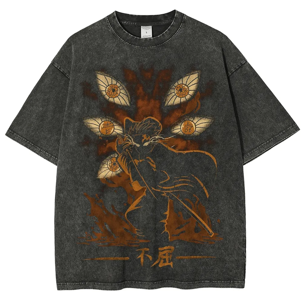 Akaza Demon Slayer Vintage Washed Anime Tee Upper Moon Martial Arts Demon Graphic Streetwear T-Shirt