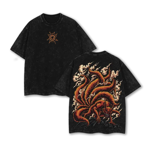 Kurama Nine Tailed Fox Jinchuriki Naruto Shippuden Anime Vintage Washed Oversized T-Shirt Graphic Tee