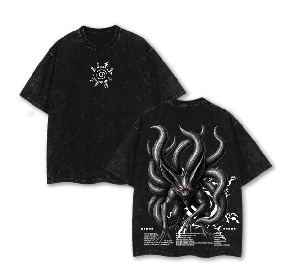 Kurama Nine Tails Naruto Anime Vintage Washed Oversized T-Shirt Nine Tailed Fox Graphic Tee