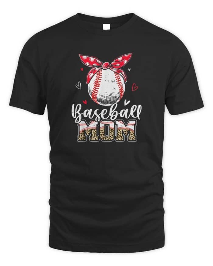 Leopard Baseball Mom Headband Baseball Ball Mothers Day Mama T-Shirt