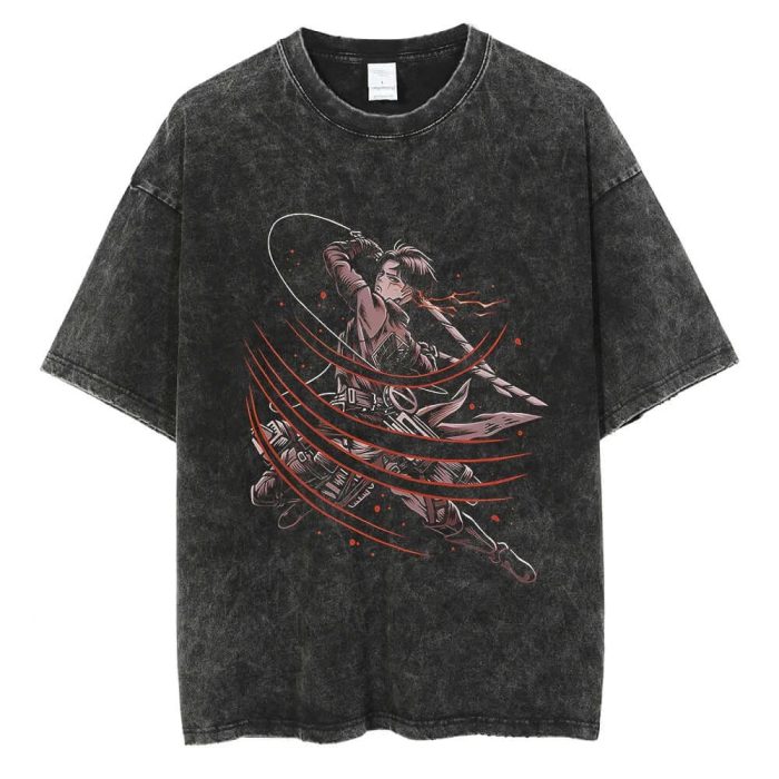 Levi Ackerman Attack On Titan Vintage Washed Anime Graphic Tee AOT Action Manga Streetwear T-Shirt