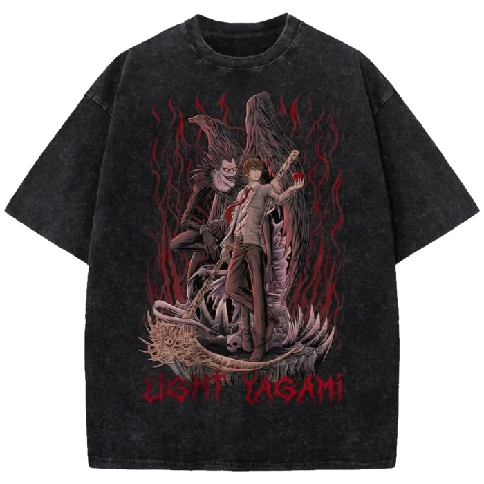 Light Yagami Anime Vintage Washed Shirt, Death Note Ryuk Manga Streetwear T-Shirt Japanese Distressed Oversized Tee