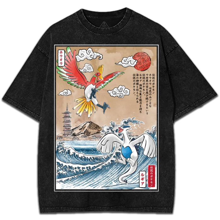 Lugia vs Ho-Oh Pokemon Vintage Washed Shirt – Japanese Anime Streetwear Oversized Tee
