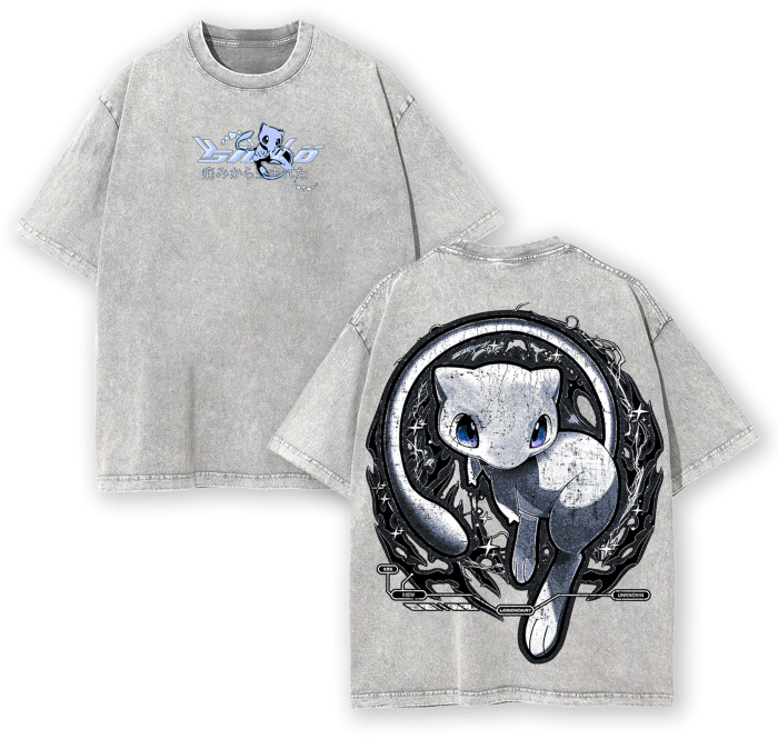 Mew Pokemon Anime Retro Vintage Oversize Manga Washed Streetwear Cotton T-Shirt
