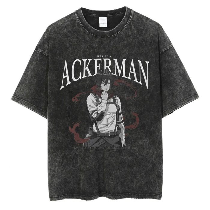 Mikasa Ackerman Attack On Titan Vintage Washed Anime Graphic Tee AOT Manga Streetwear T-Shirt