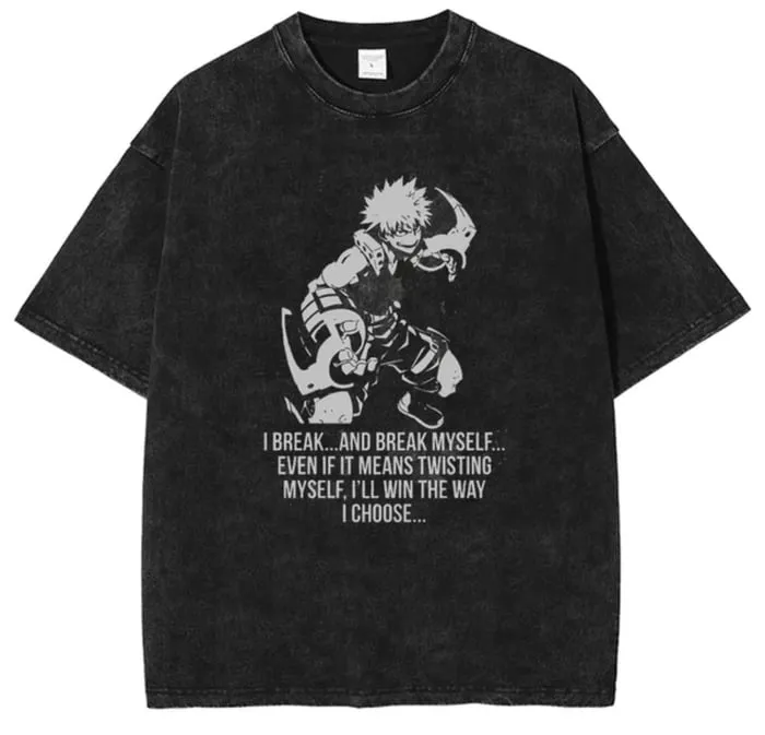 My Hero Academia Vintage Washed Oversized Anime Graphic T-Shirt