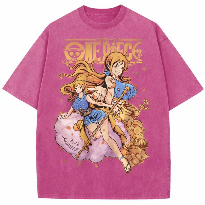 Nami One Piece Treasure Vintage Washed Anime Graphic Oversized T-Shirt