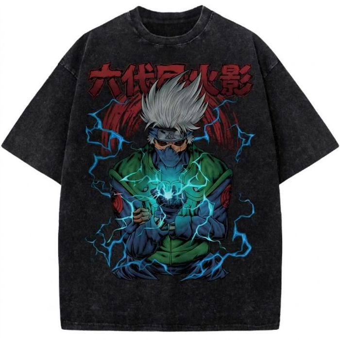 Naruto Kakashi Hatake Lightning Chidori Anime Vintage Washed T-Shirt Retro Ninja Anime Graphic Tee