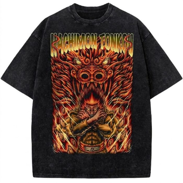 Naruto Raikage Lightning Beast Anime Vintage Washed T-Shirt Retro Ninja Power Graphic Tee