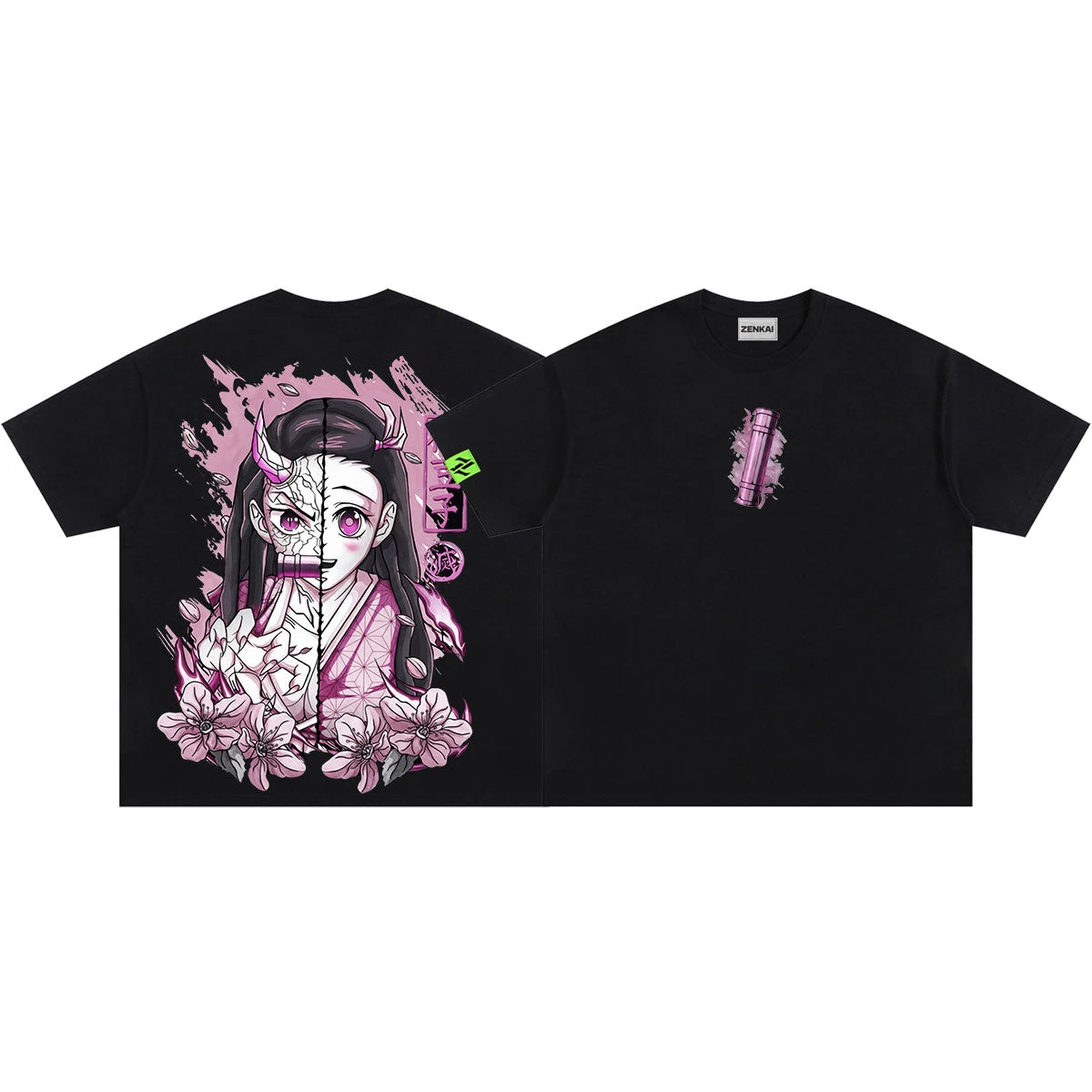 Nezuko Kamado The Chosen Demon Vintage Washed Oversized T-Shirt – Retro Anime Manga Tee, Japanese Streetwear Shirt