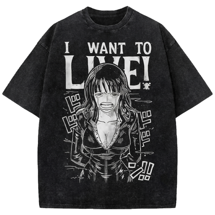 Nico Robin Anime Vintage Washed Shirt, One Piece Manga Streetwear T-Shirt Japanese Distressed Oversized Tee