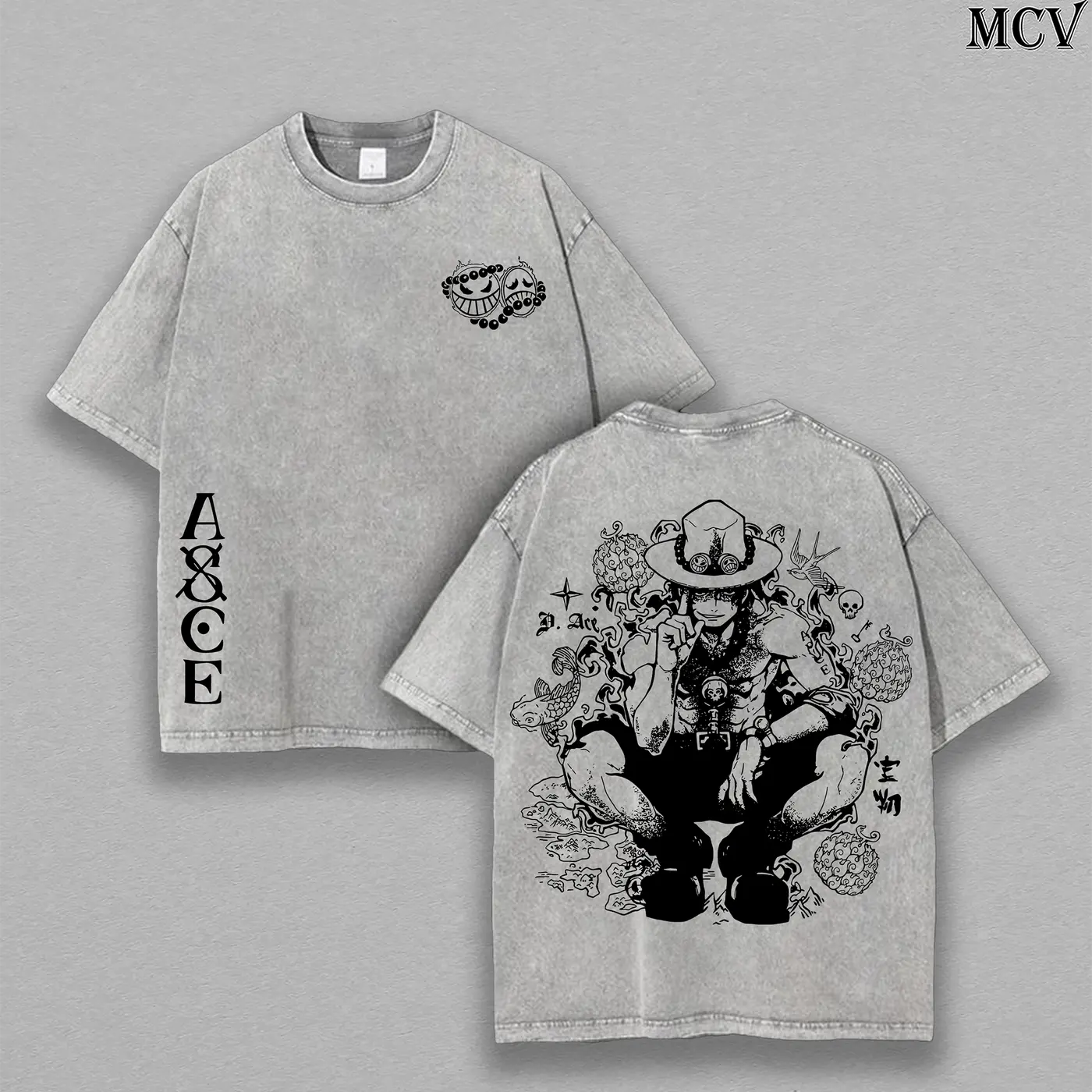 One Piece Ace Retro Washed T-Shirt – Vintage Anime Graphic Shirt
