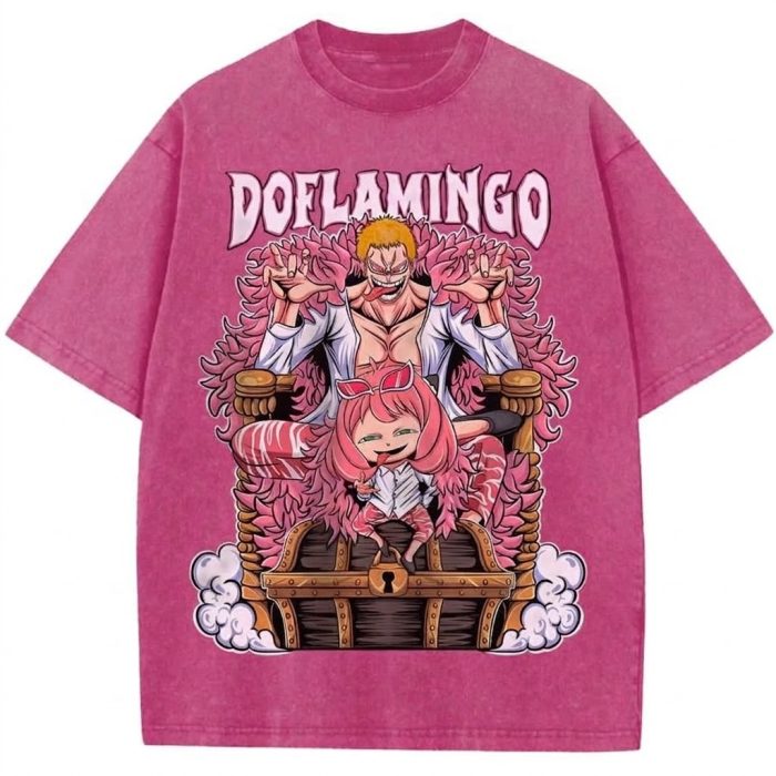 One Piece Donquixote Doflamingo Anime Graphic Vintage Washed T-Shirt Retro Pirate Villain Anime Vintage Washed Tee