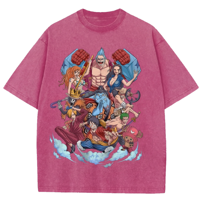 One Piece Team Anime Oversized Washed T-Shirt, Manga Streetwear Shirt Japanese Vintage Distressed Tee