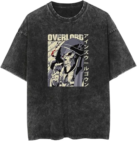 Overlord Anime Ainz Ooal Gown Skeleton King Vintage Washed Oversized Graphic T-Shirt