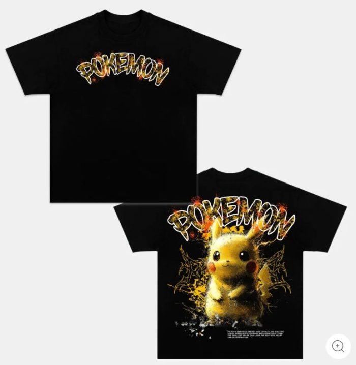 Pikachu Pokemon Anime Character Vintage Washed T-Shirt Kids Oversized Tee