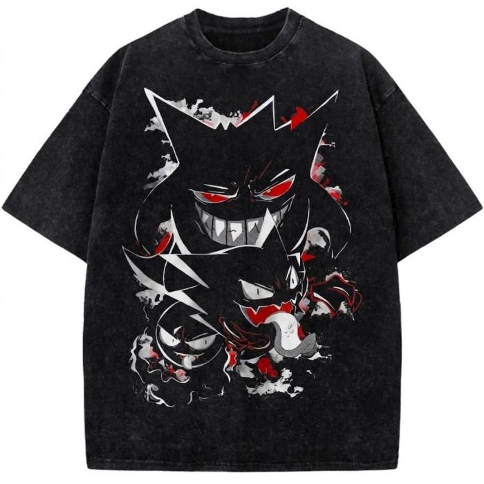 Pokemon Gengar Evolution Anime Vintage Washed T-Shirt Dark Ghost Pokemon Retro Graphic Tee