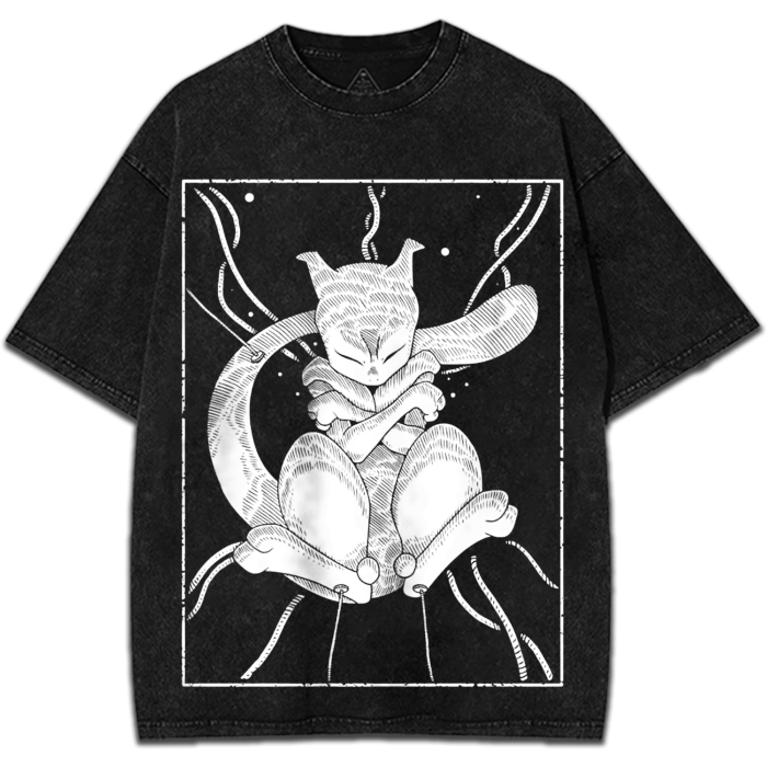 Pokemon Mewtwo Psychic Legendary Anime Character Graphic Vintage Washed T-Shirt Japanese Harajuku Streetwear Oversized Tee