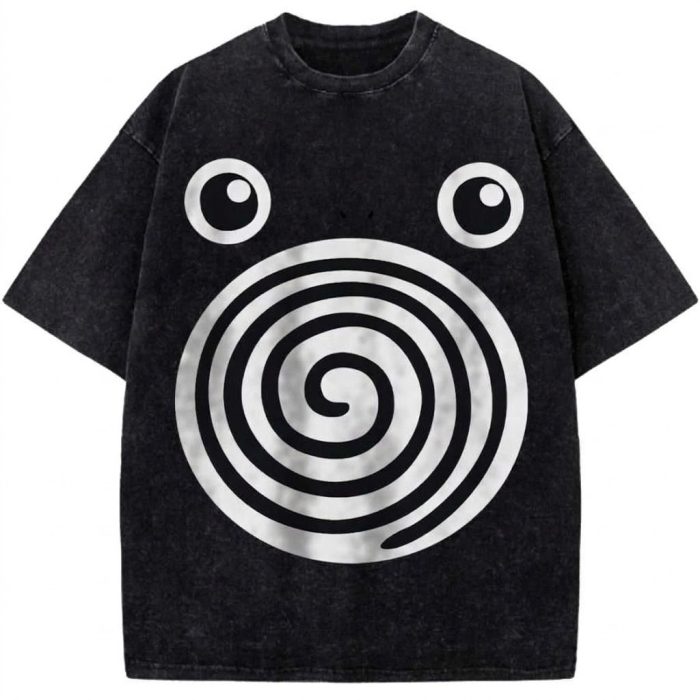 Poliwhirl Spiral Vintage Washed Black Over-sized T-Shirt