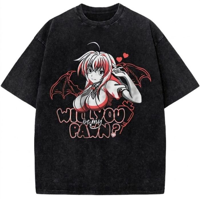 Rias Gremory High School DxD Anime Vintage Washed T-Shirt “Will You Be My Pawn” Cute Devil Graphic Tee
