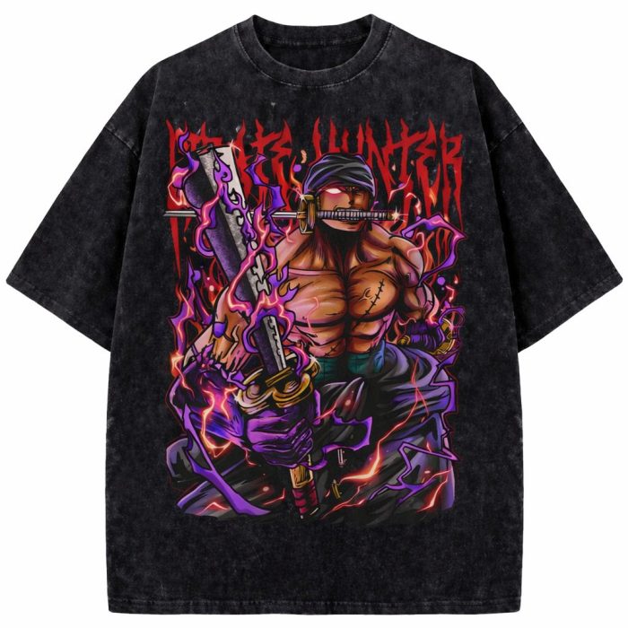 Roronoa Zoro King Of Hell Vintage Washed Anime Graphic Oversized T-Shirt