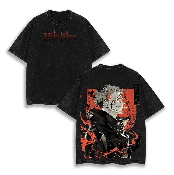 Ryomen Sukuna V2 Jujutsu Kaisen Anime Vintage Washed Oversized T-Shirt King Of Curses Manga Graphic Tee