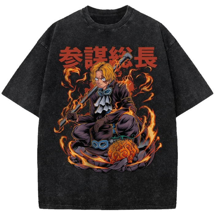 Sabo Anime Oversized Washed T-Shirt, One Piece Manga Streetwear Shirt Japanese Vintage Distressed Tee