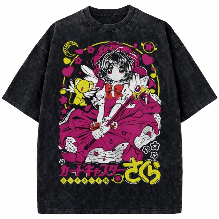 Sakura Cardcaptor Cute Vintage Washed Anime Graphic Oversized T-Shirt