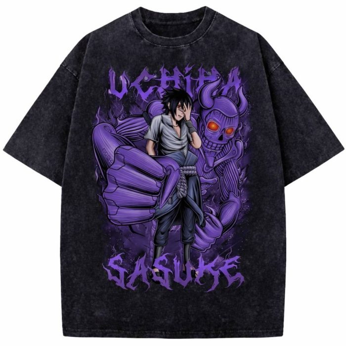 Sasuke Uchiha Susanoo Vintage Washed Anime Graphic Oversized T-Shirt