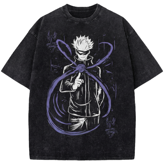 Satoru Gojo Anime Oversized Washed Shirt, Jujutsu Kaisen Vintage Distressed Tee Japanese Manga Streetwear T-Shirt