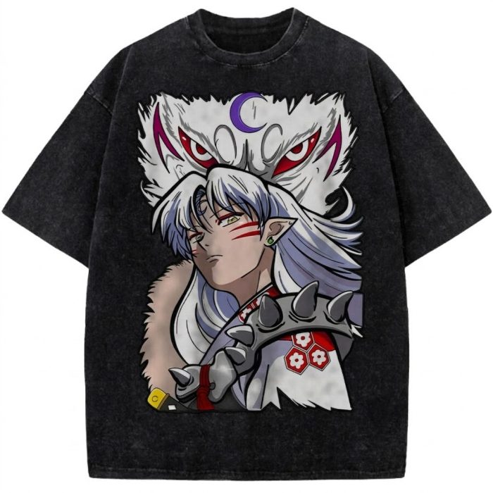 Sesshomaru Inuyasha Vintage Washed Anime Tee Demon Lord Moon Mark Graphic Streetwear T-Shirt