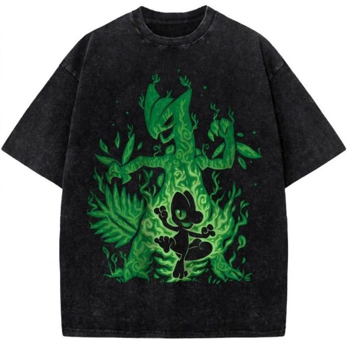 Sprigatito Pokémon Evolution Vintage Washed T-Shirt Grass Starter Anime Graphic Tee