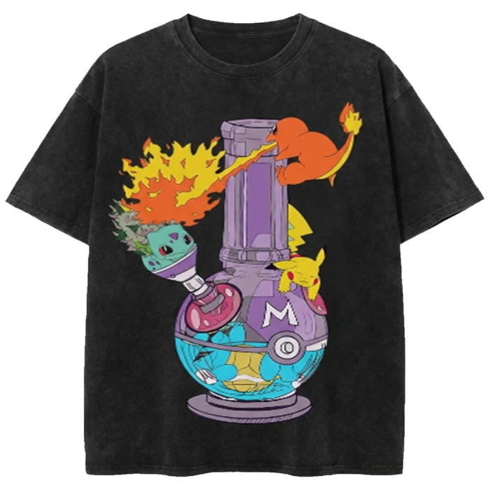 Squirtle, Charmander, Pikachu And Bulbasaur Vintage Oversized Washed Tee Pokemon Anime Heavyweight Cotton Streetwear Shirt