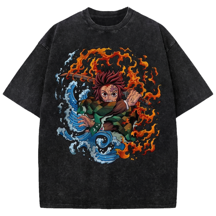 Tanjiro Kamado Anime Vintage Washed Shirt, Demon Slayer Manga Streetwear Tee Anime Oversized T-Shirt