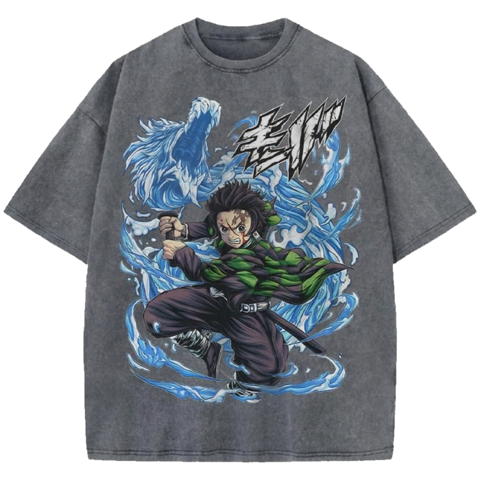 Tanjiro Kamado Anime Vintage Washed Tee , Demon Slayer Manga Streetwear Shirt Japanese Distressed Oversized T-Shirt