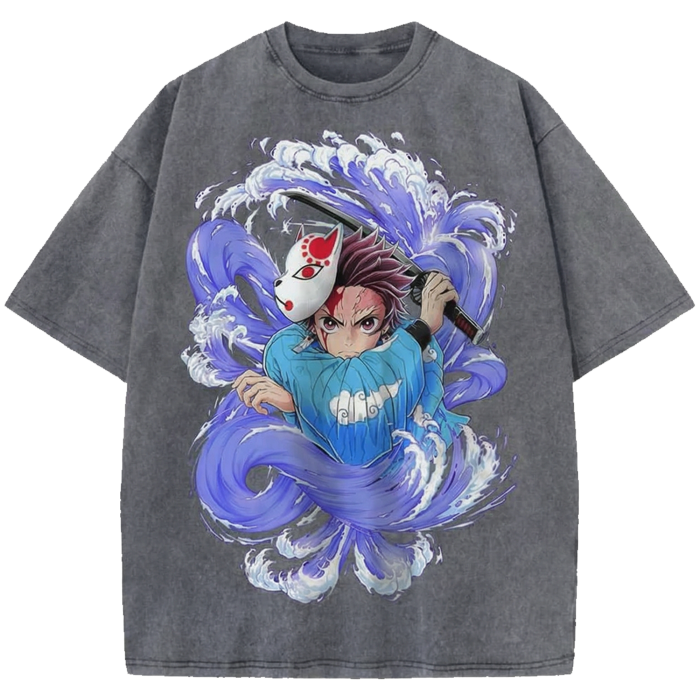 Tanjiro Kamado Demon Slayer Oversized Washed Tee – Retro Manga Streetwear Shirt, Vintage Anime Fans