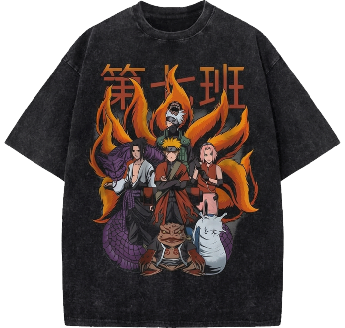 Team 7 Naruto Heavyweight Oversized Washed Tee – Vintage Anime Japanese Streetwear T-Shirt