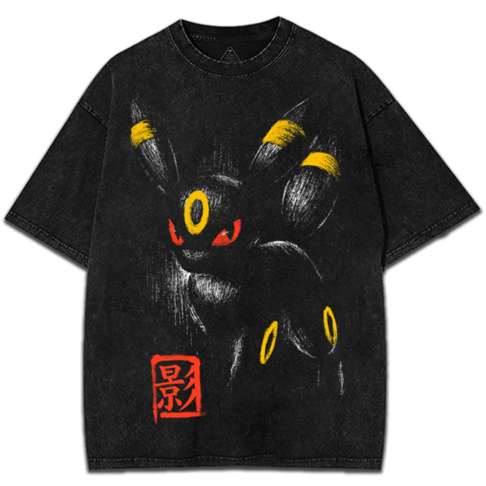 Umbreon Pokemon Vintage Washed T-Shirt – Retro Anime Graphic Tee, Japanese Manga Streetwear Oversized Shirt for Pokemon Fans
