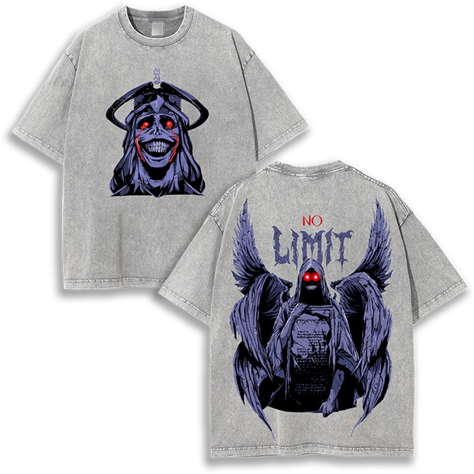 Anime Clothing Statue Of God Solo Leveling Vintage Washed Oversized Tee 90s Distressed Graphic Shirt