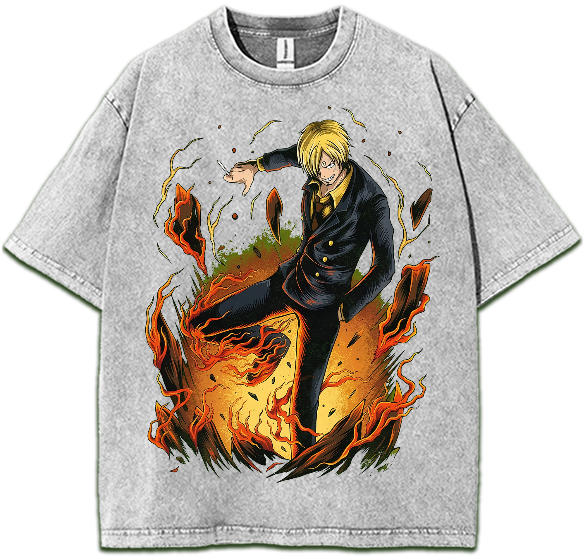 Anime Clothing Vinsmoke Sanji Diable Jambe One Piece Vintage Washed Oversized T-Shirt