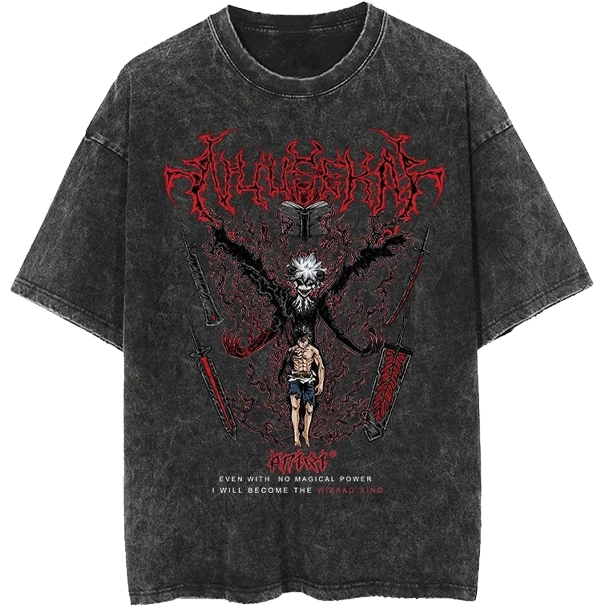 Anime Clothing Wizard King Black Clover Vintage Washed Oversized Tee Shirt