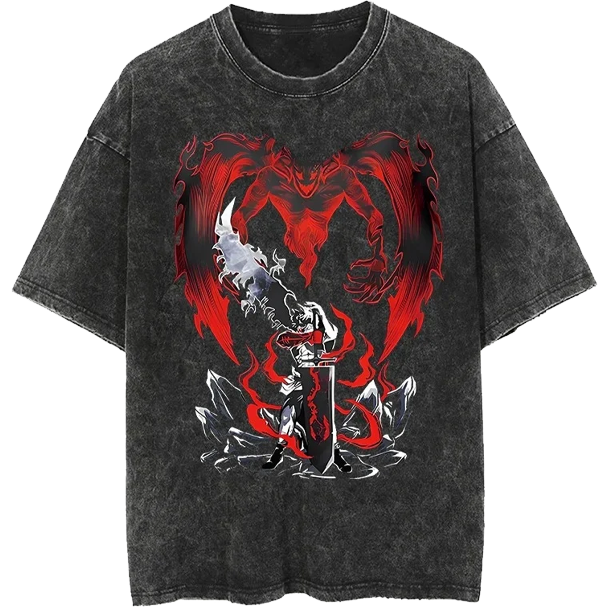 Anime Dragon Warrior Washed T-Shirt – Japanese Dragon Fire Graphic Tee