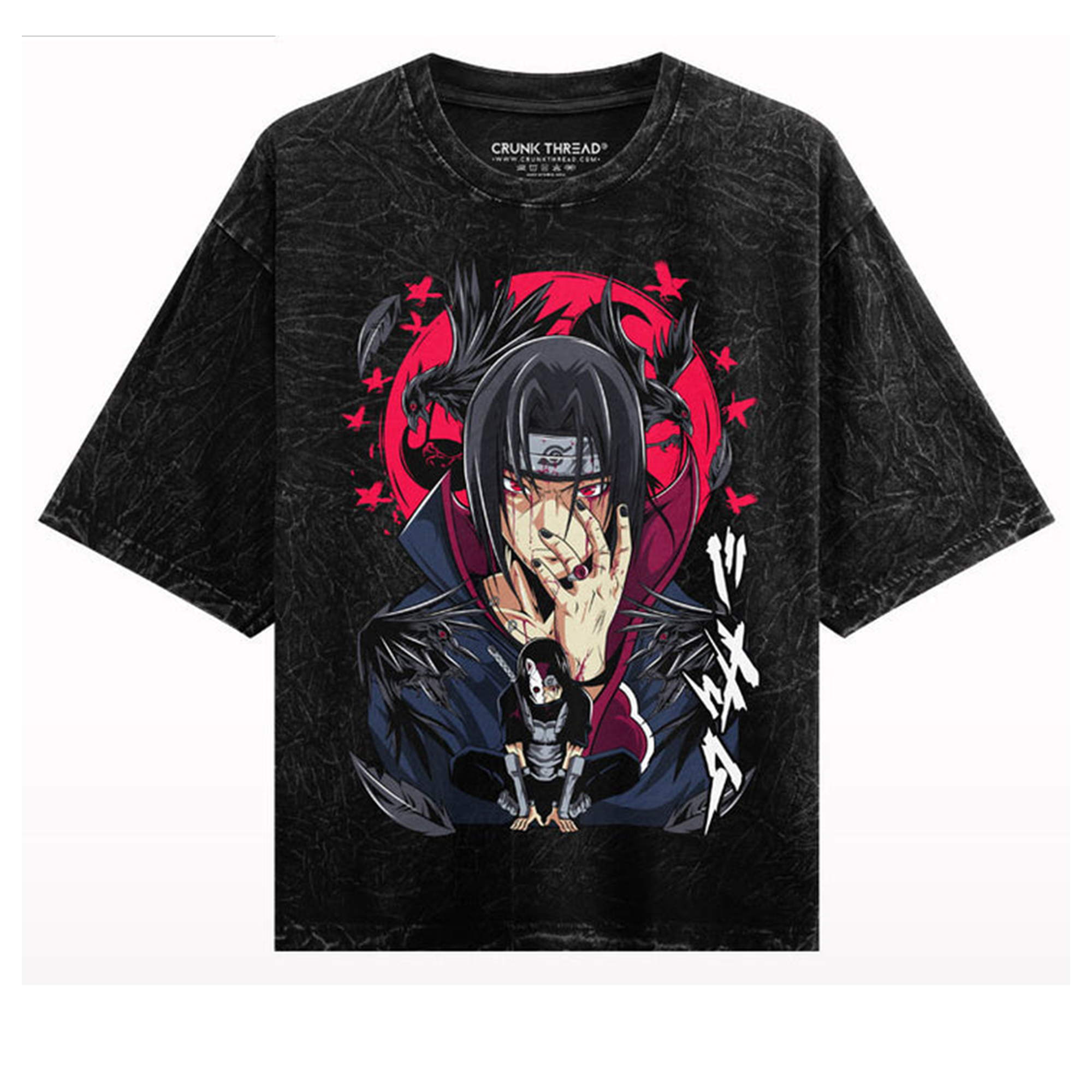 Uchiha Itachi Anime Stonewash Oversized T-shirt Vintage Washed T Shirt – Streetwear Manga Tee, Oversized Anime T-Shirt